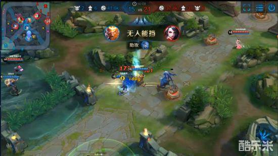 孙悟空的机动性强不强,主要还得看游戏中的表现。在敌方中下路野区位置,我方苏烈先去挑衅敌方开启了团战。刚好路过的孙悟空直接抓住敌方后排输出阿珂。大招将其击飞控住。而这是时候苏烈与地方甄姬与达摩对抗,防止他们两对孙悟空进行干扰。