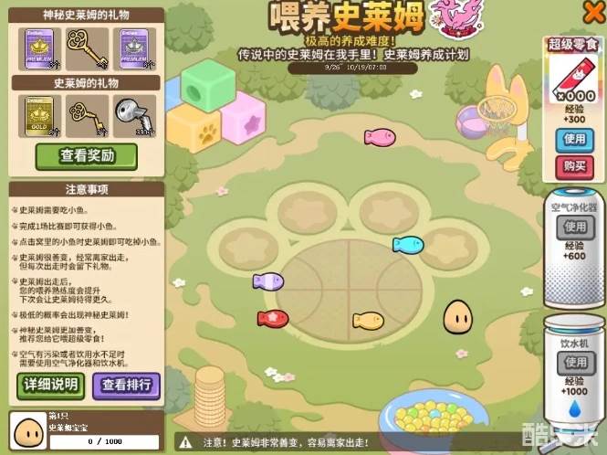 史莱姆需要吃小鱼。完成1场比赛即可获得小鱼。