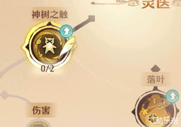 在初始的时候,灵医有3个技能可以选择,分别是神树之触,落叶和藤蔓。前期我们需要先点神树之触,这虽然是一个输出技能,但是之后灵医的治疗技能都是需要先点出这个技能才可以学习,所以这是玩家们第一个先要学习的技能。