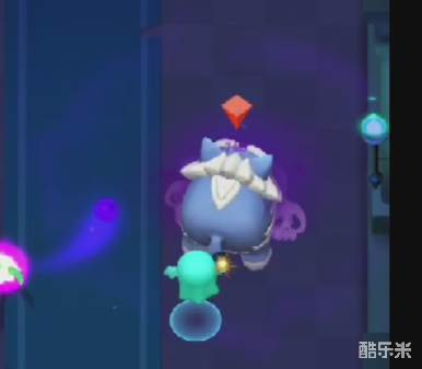 应对方法:因为boss处于地图中间位置,如果我们在下方,吐出的雷球在没有达到墙壁时就会达到最远距离,很容易限制我们的走位空间。我们可以在房间两侧偏上或偏下的位置吸引火力,让雷球可以触碰墙壁分裂,这样我们只要与左右两侧墙壁保持距离,并注意纵向分裂的雷球即可。