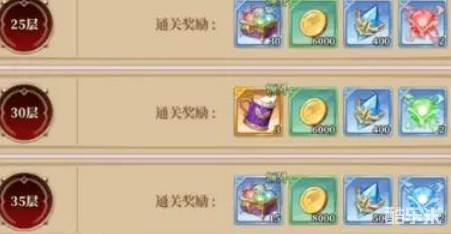 通关奖励比较丰富,只要首次通关第50层的话就可以获得稀有的魔导士,这个魔导士是可以指定选择的,奖励很丰富,除了有魔导士以外,玩家还可以将通关掉落的材料进行兑换,商店内有很多经验材料以及招募券,能极大程度提升玩家阵容的完善度,建议每期都是可以打一下的。