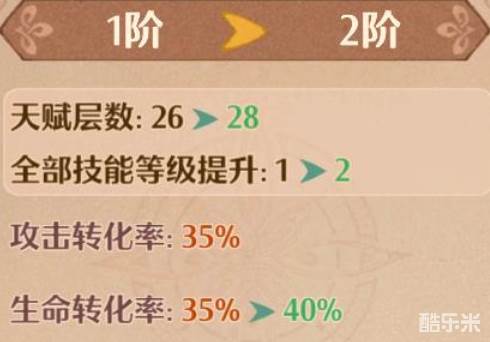 除了属性上的转换以外,幻果在升星的时候技能等级也会进行提升,玩家们在幻化的时候经常会嫌弃自身的技能伤害不足,这个时候只需要升星的话,便可以提升幻果的全技能等级。同时天赋的层数还会得到进一步提升。