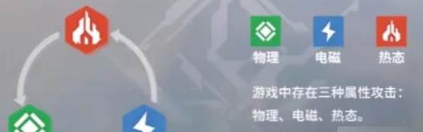 在少前2:追放的战场中,敌我双方每个单位均有属于自己的属性,常见的三种属性为:物理(绿)、电磁(蓝)和热态(红),三种属性的克制关系如上图。除了常见的3种属性外,还有两种互为克制的属性:重组(黄)&逆变(紫)。