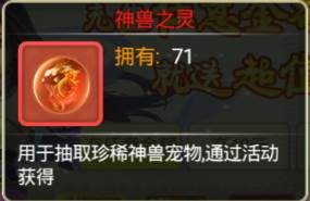 1、参加跨服争霸、苍穹之巅、帮派战等跨服活动中,通过增加积分到达一定的条件后,便能获得神兽之灵。