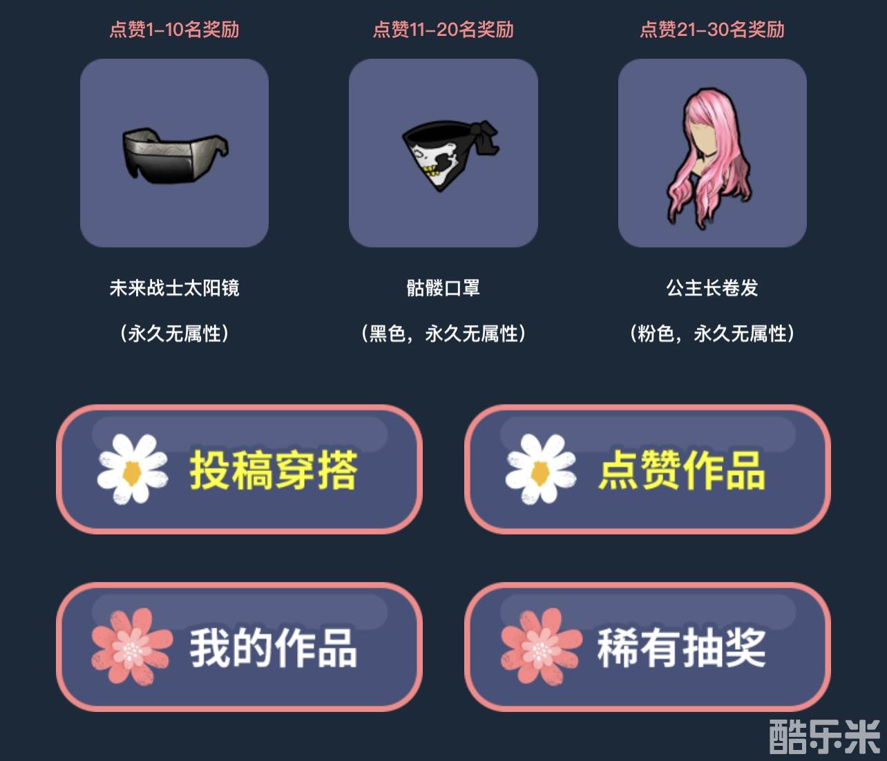 PS:没有月儿角色的玩家虽然无法参与投稿活动,但是可以通过点赞分享获得2次抽奖机会,有机会抽取月儿角色包以及黑超5发型,千万不要错过!