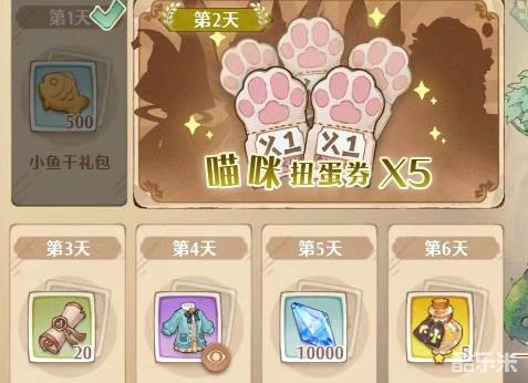 7日礼包上面包括了小鱼干、猫灵兑换券、强化卷轴、时尚套账、卡牌以及卡牌的养成道具。这些都是在游戏中很重要的武器装备道具,也由此可见了游戏的玩法上还是很多样的。