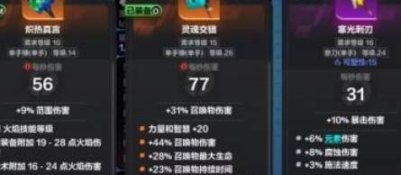 还有可以装备的触发型技能,使用后会封印角色的一部分生命或法力值但会有更强大的效果,例如,将“暴击时施放”和“五彩射击”联动后,使用其他攻击技能进行暴击时,也会触发一次“五彩射击”。