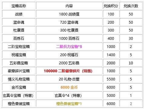3、活动期间内可使用活动材料兑换各种神秘宝箱,每种宝箱都有兑换次数限制。