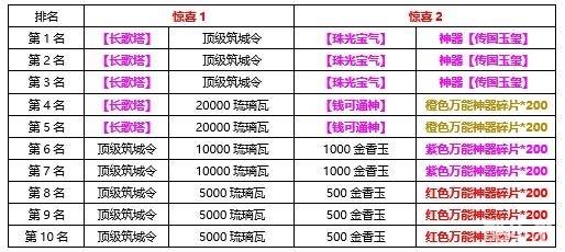 2.【长歌塔】为本期双节特惠排行限定城池焕型,升级后拥有更高属性,后续短期内无其他获取方式;