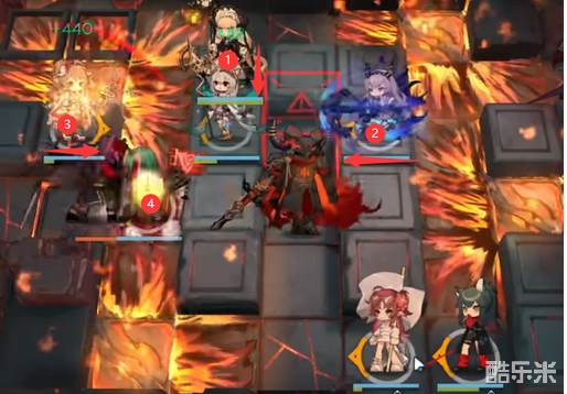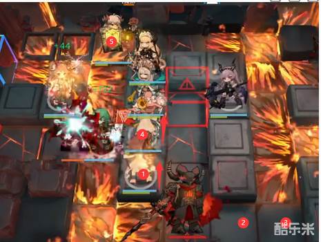 等到浊心斯卡蒂被缠绕后,继续部署:夜莺(向下) → 提丰(向左)→ 纯烬艾雅法拉(向右)→ 提丰开技能,部署星熊