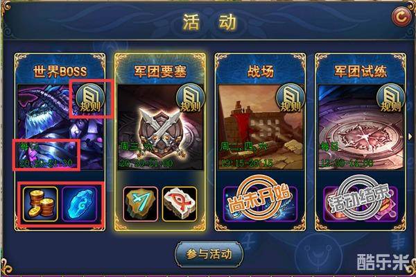 可以点击对应活动的规则查看活动的详细规则;根据活动的时间可以提前进行准备,以免错过了活动;在选择了活动后点击下方的参加活动可以传送至活动的区域或者打开活动面板。