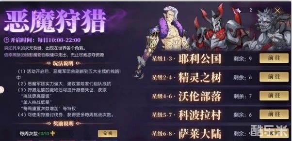1、新副本:恶魔狩猎(活动时间:10点-22点)