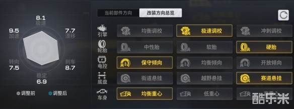 ’22的风采后,试着改装了下,这样的方向比较适合小极的手感:引擎-极速调教、轮胎-硬胎、电控-保守倾向、底盘-赛道悬挂、车身-均衡重心设定。当然了,传奇车的培养成本比较高,所以在前期小极重点推荐针对引擎、电控、轮胎三个部位进行强化~