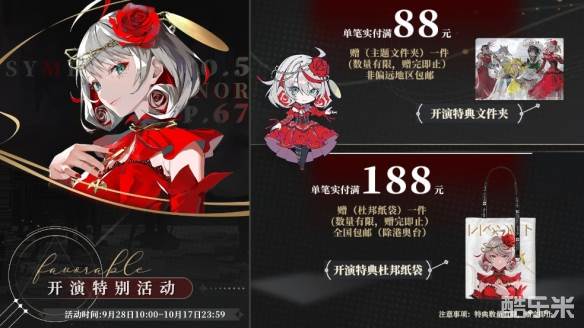 BlingBling的双闪徽章等多款人气周边首次开启线上通贩,更有开演特别活动,小伙伴们即日起活动期间参与活动,即可获得满赠“开演特典”精美礼品!单笔实付满88元,赠送“开演特典文件夹”一件;单笔实付满188元,赠送“开演特典杜邦纸袋”一件!心动不如行动,还不快快get心爱的周边产品!