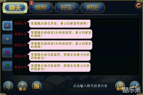 聊天:查看整个大区、服务器、密语、军团以及系统公告的内容
