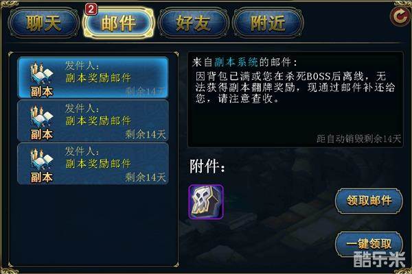 邮件:查看收到的邮件内容以及一键领取邮件附件。