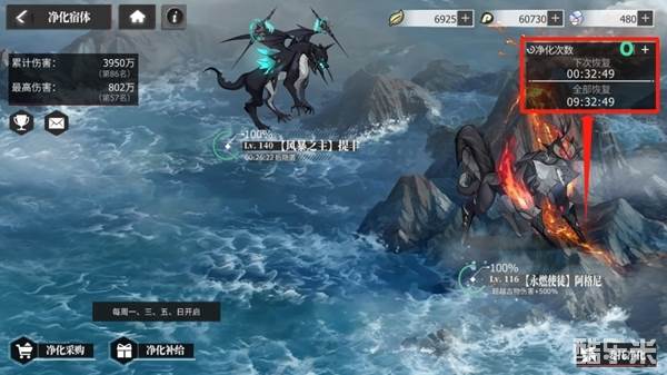 净化宿体的挑战次数每小时恢复一次,所以要经常挑战,不要让挑战次数闲置。如“挑战/领取时间固定的内容”所述,从10点到14点,以及18点到22点期间,可以更有效地造成伤害。