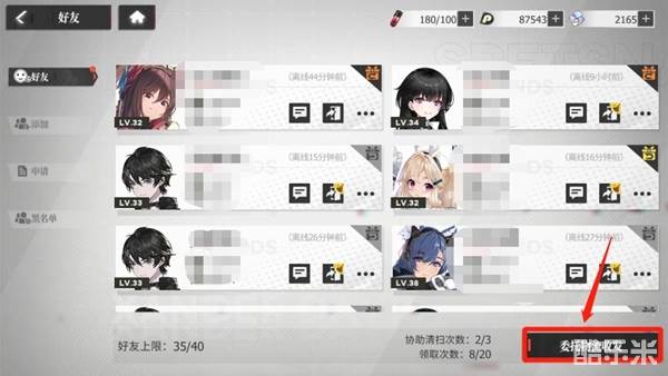每天最多可以向20位好友赠送行动点。要经常检查好友界面,领取赠送的行动点。
