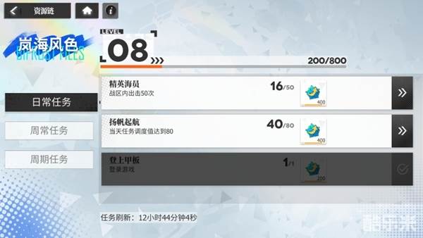 资源链中有每日更新的日常任务,可以获得复合营养液、超源质等丰富奖励,因此应该每天都尽量完成。