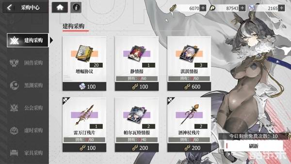 采购中心里,部分采购的商品每天都会更换。可以点击“刷新”更改商品的种类。利用免费的刷新次数,来收集想要的物品吧。