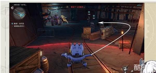 5.跟随指引来到下一处,同样是等雇员往回走时,我们绕到矿车后面引爆即可。