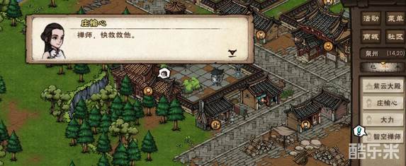 6、继续来到(15,3)与赵乾进行对话,然后返回与庄愉心对话,知道我们需要10药渣,可以通过杂草炼,集齐之后继续返回对话。