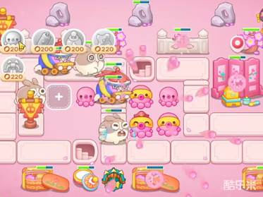 2、之后继续在中央补充更多的章鱼,来增加输出能力同时清理障碍。