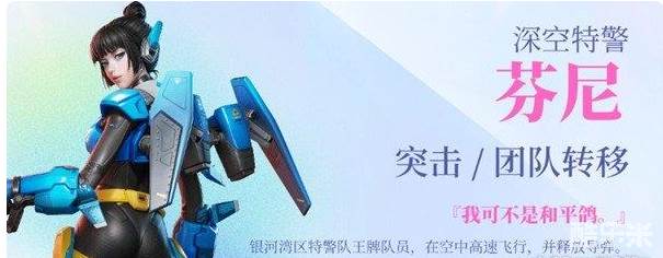 第四个介绍的英雄是突击类型的英雄角色,叫做芬妮,这个英雄整体外观设计是非常具体科技感的,这也和芬妮本身的技能达到了高度契合,被动技能让芬妮能够在跳伞的阶段就直接得到敌人的大致方位,其余的技能则都是伤害极高的效果,终极技能则可以带着队友一起使用虫洞来切换位置,规避敌人伤害的同时找寻合适的攻击时机,一击毙命。