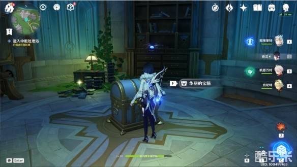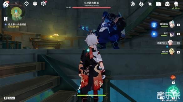 9、从楼梯上来后能够看见愚人众,进入挑战。