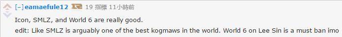 Icon、SMLZ和World6发挥的都很棒 Ps:在我看来,SMLZ可以说是世界上最好的大嘴使用者之一,World6的盲僧同样值得一个Ban位