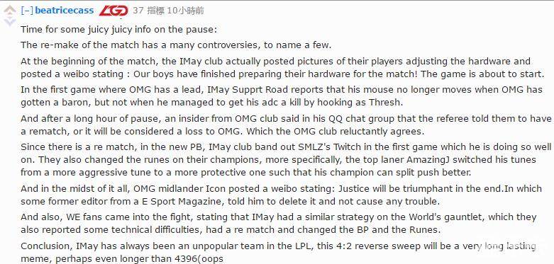 与此同时,WE的粉丝也加入到这场争论中,称IM在去年S6资格赛时也用了相同的策略,声称有技术问题并要求重赛,利用机会改变BP和符文。