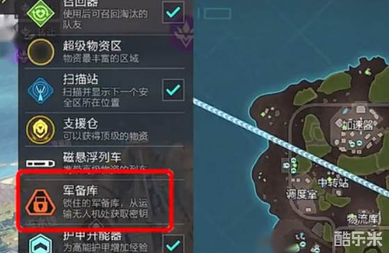 大家可通过游戏界面中的右上角来打开地图,选择合适的颜色区域,在里面除了常规物资,高级物资自然也是有的,这个地去叫军备库,打开也是需要时间的,最好是队友之间互相配合,毕竟被埋伏的话,会很被动。