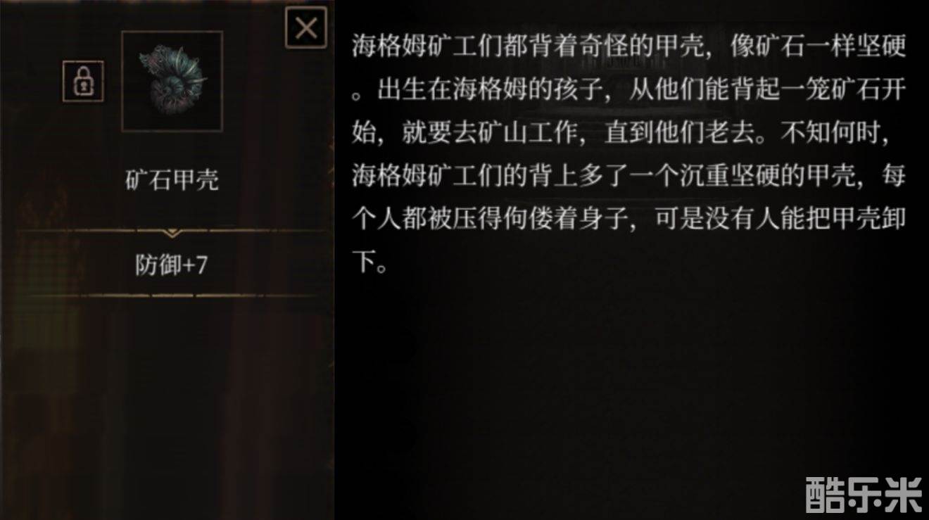矿石甲壳:第一章矿洞里的一个宝箱获取。