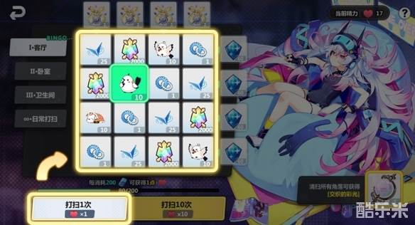 每消耗200体力即可获得一点精力,精力可用于随机打扫房间内的一个角落,同时获得这个角落的奖励。