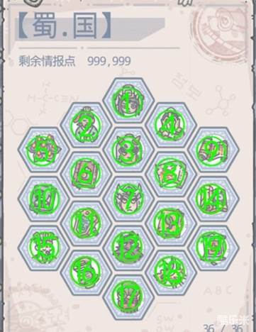 3、蜀国的情报不需要全点,实力不够的玩家很难打的过吕布,所以小编推荐如小图均衡加点就可以了。