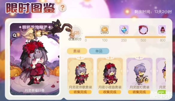 限时图鉴活动开启!活动时间内完成收集限时图鉴内收录的装扮部件,即可获得对应收集积分,前来收集解锁对应的进度奖励吧。奖励包括丰厚的晶钻和装扮物品,达成对应进度可解锁幻光「月灵足迹」、装扮散件「月灵祈福扫帚」、晨星品质称号「月光偏爱的小熊」等奖励,达成最终积分进度还可领取背景卡「月灵瑰夜背景」。
