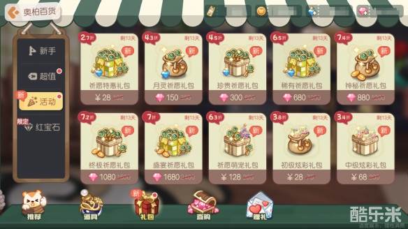 奥柏百货上架全新限时礼包——「祈愿」、「萌宠」系列折扣礼包,限时折扣优惠商品不可错过!