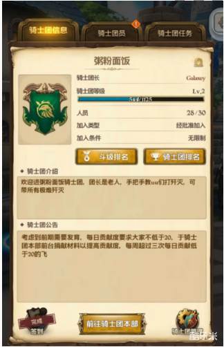 2、需要战力较高的玩家参与,可以获得骑士团币以及钻石。