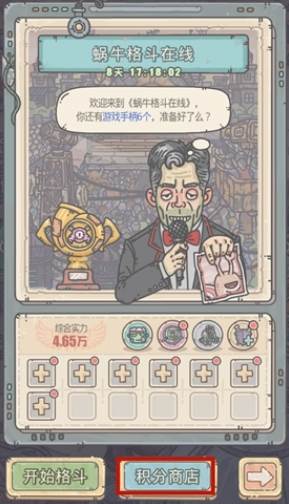 1、格斗商店指的就是“蜗牛格斗”中小游戏的积分商店