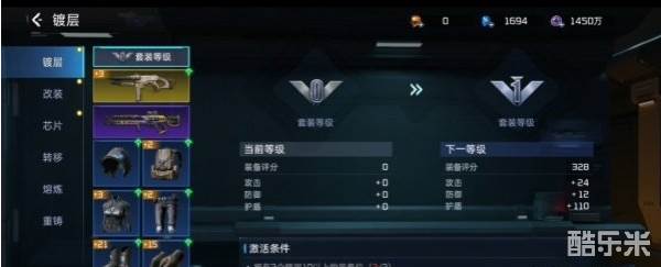 星球重启镀层有什么用 具体作用分析,角色升级至11级后开放镀层系统,两个枪械位算一个整体共享等级,其余装备部位各自升级,消耗超合金升级材料。除此之外,如果你能达成套装激活条件,还将获得攻击、防御、护盾增值。