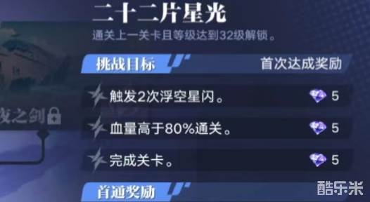 挑战之前小编建议战力达到9万以上再去参战,不然会非常吃力,达到了之后再熟悉好流程就会变得极其简单。第1关力量的本源,属于较为简单的一关,只需要在指定时间内击杀足够敌人就能通关。第2关二十二片星光,有一个挑战目标是需要触发两次浮空星闪,至于触发方式就是利用技能击中处于空中敌人就能成功,要多多注意尽量开战就达成,不然很容易遗忘。