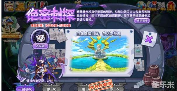 4.小洛克们可以根据自己的情况进行情报的刺探行动方式,累计收集记录9份情报,就可以解锁:暗黑赫卡特进化资格。