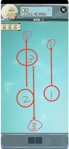 6、之后屏幕左侧出现波纹,需要点击,之后再点2号和3号点位即可获得泥鳅。