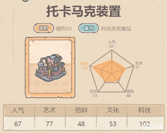 1、托卡马克装置置于时光机,赋予效果:贵重品自身科技+15