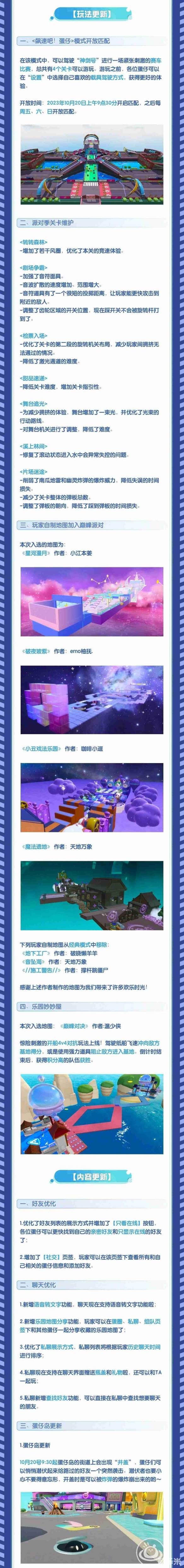 2.新增乐园地图分享功能,玩家可以在蛋圈、私聊、组队页签下和其他蛋仔一起分享收藏的乐园地图了;