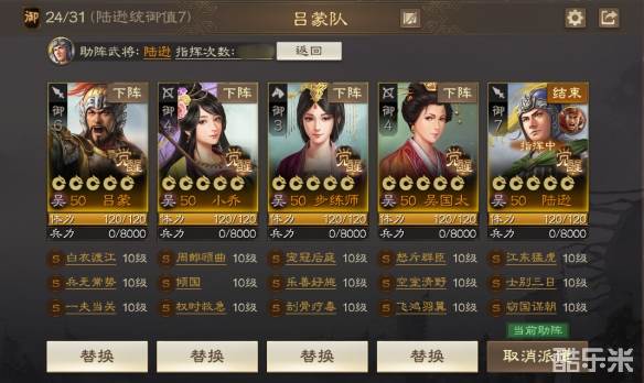 3、由助阵武将组成新的部队的统御值仍不可超过上限
