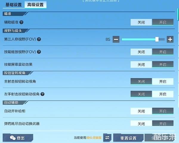 1、辅助瞄准:开启