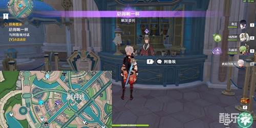 1、想要获得这个成就需要调三次咖啡,首先传送枫丹廷西南方向锚点,往地图的东北方向飞,前往咖啡厅,与阿鲁埃对话;