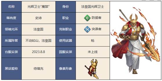 以上就是小编带来的关于铃兰之剑为这和平的世界光辉卫士魔禁角色的介绍了,希望能帮助到各位小伙伴。