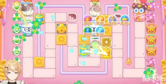 3、接着在地图中央的拐角建造进元宝压低怪物的血限,右侧建造冰桶来打打控制。
